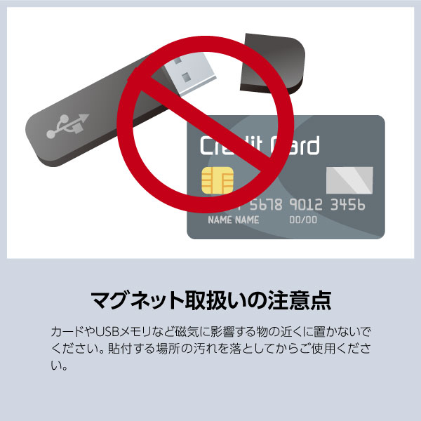 カードやUSBメモリなど磁気に影響する物の近くに置かないでください。貼付する場所の汚れを落としてからご使用ください。